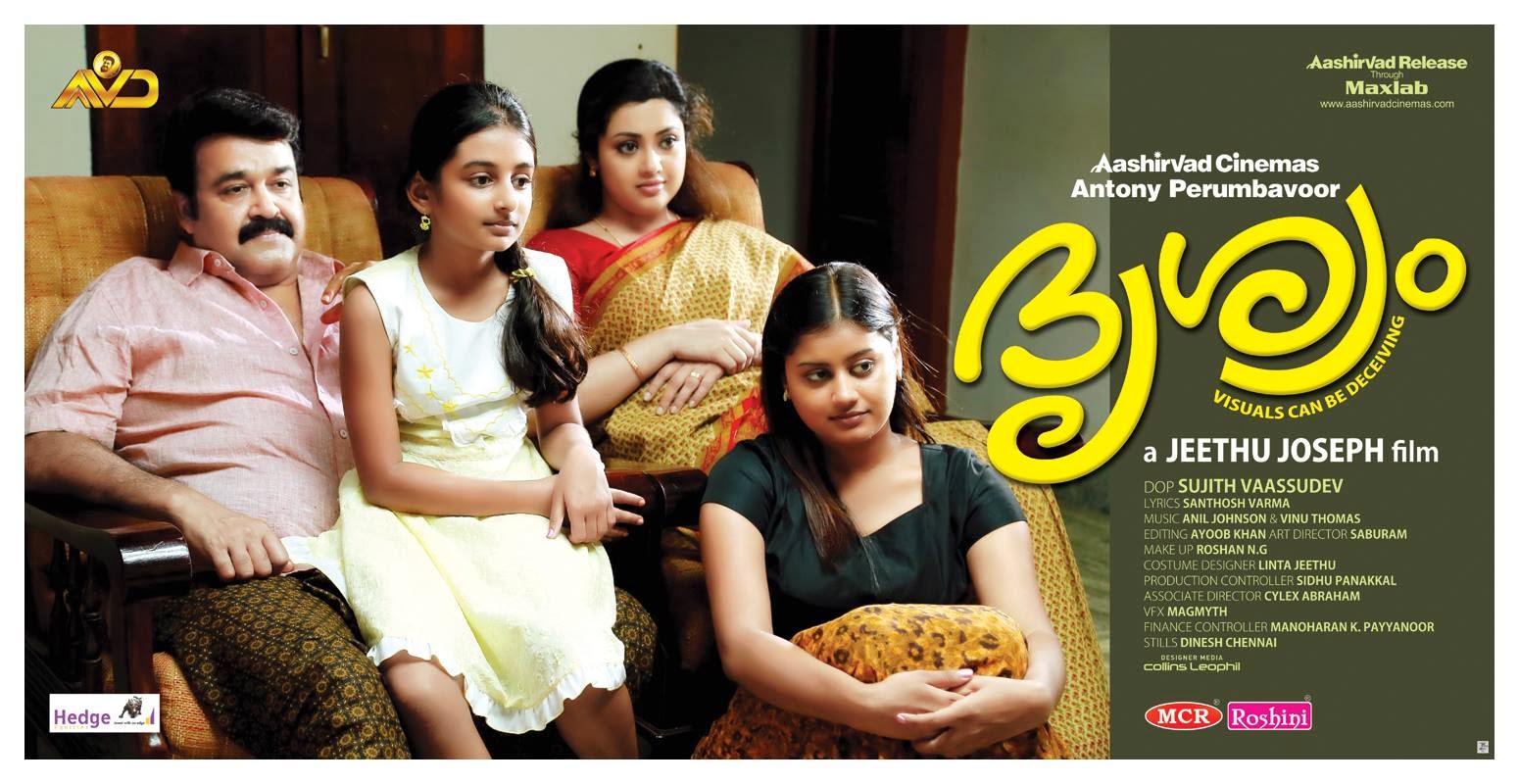 The film opens with a bus journey and it is when the story progresses that the significance of the event is understood. It then becomes clear that Jeethu Joseph has not wasted even one shot in the film. Everything fits together to form this ‘picture’. In fact, even the word ‘drishyam’ means a picture/visual. The film is then a meta film – a film within a film. Narrative and directorial control is displayed in the film.